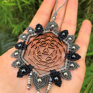 • Macrame Wood LavaStone Merkaba necklace
