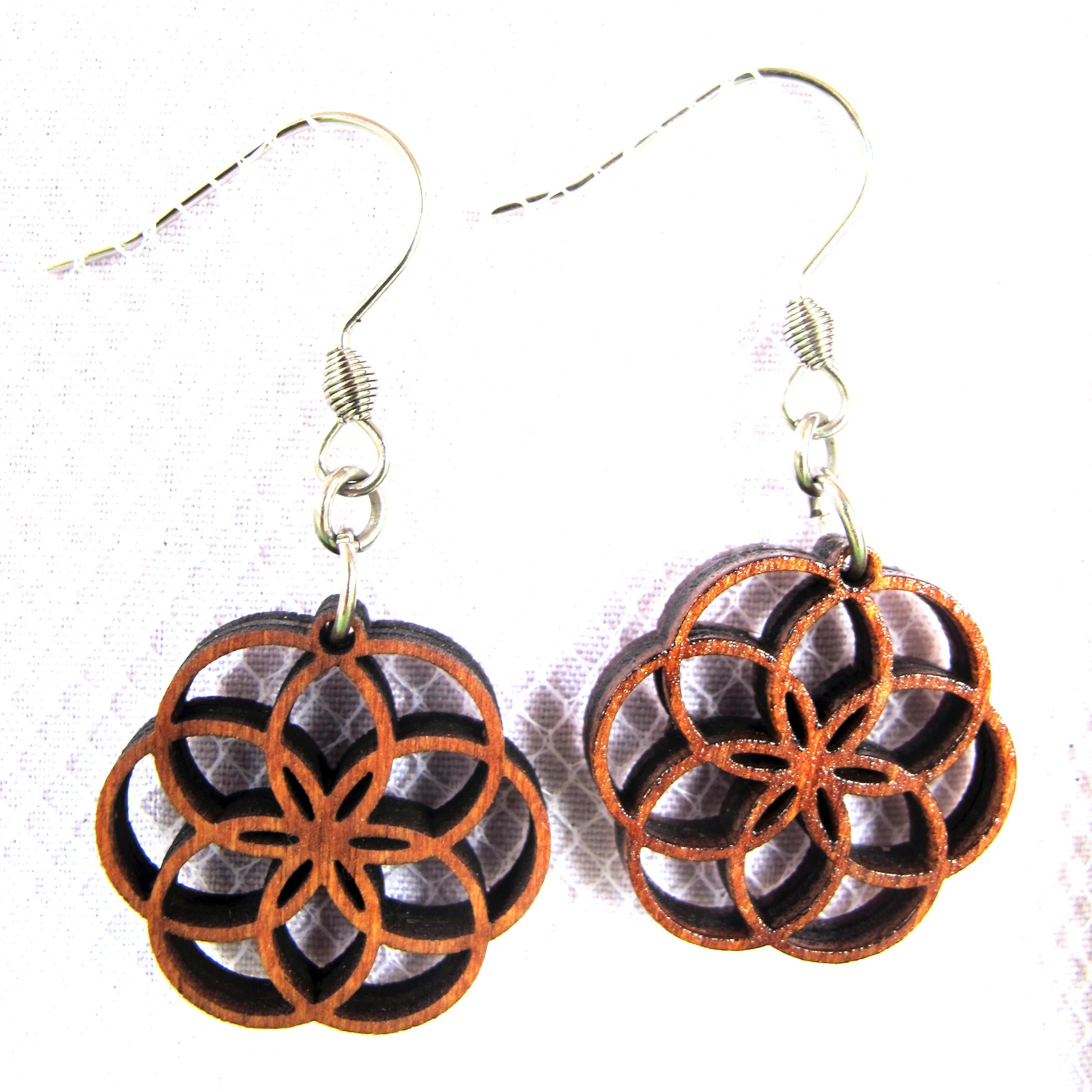 These wooden sacred geometry earrings are a variation of Seed of Life pattern – “Lotus” earrings. Small model. Dangle wooden earrings.