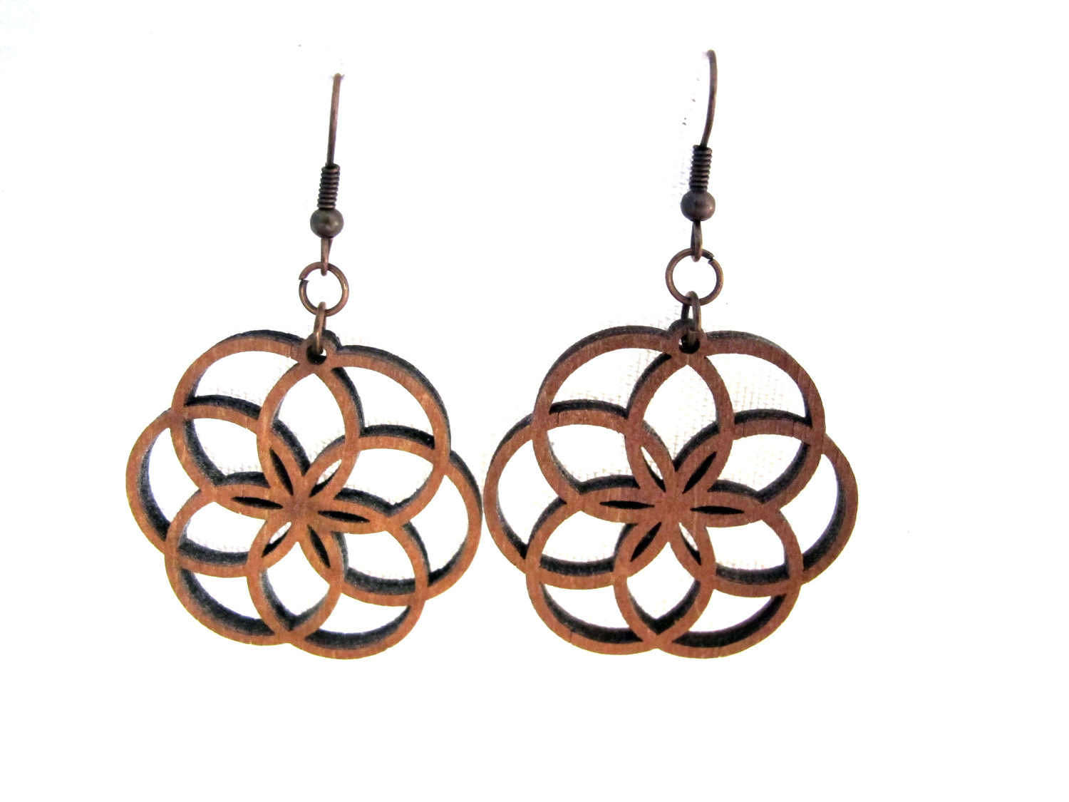 Wooden Lotus Earrings – Seed of Life – Sacred Geometry Earrings, Yoga Earrings, Everyday Wooden earrings, Bohemian earrings, Circle earrings